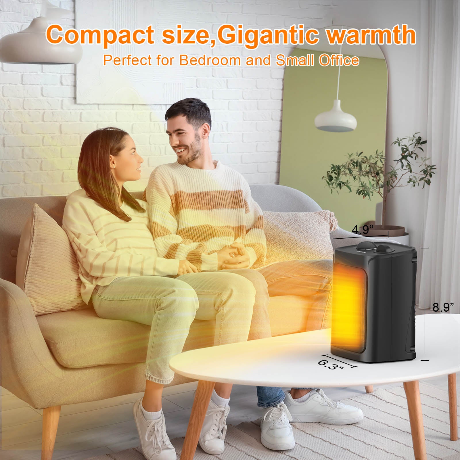 Multiple Safety Protections: The small heater features built-in overheat protection and tip-over shut-off to ensure it automatically powers off in abnormal situations, providing safe use for your home.