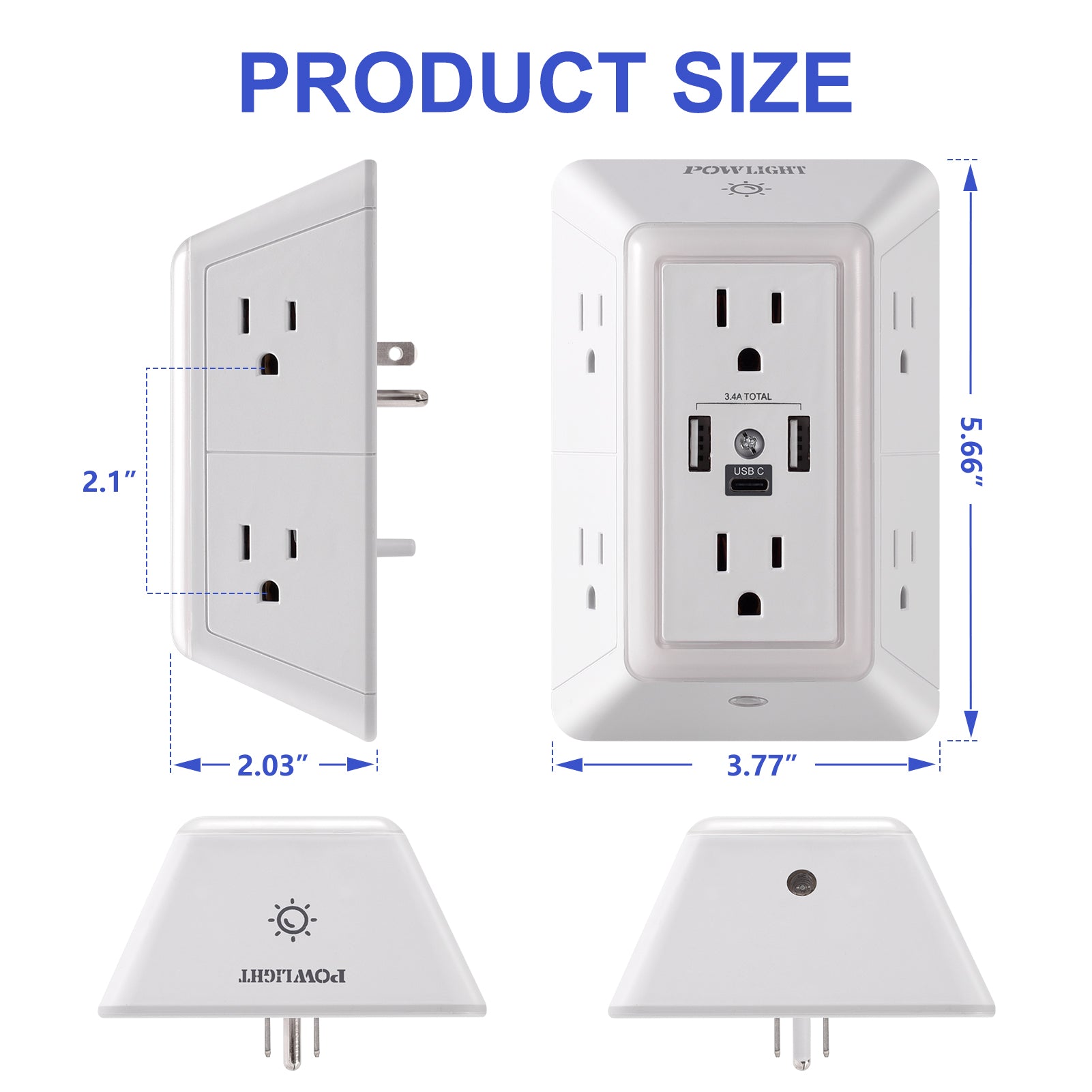 Smart Night Light: The outlet extender comes with a built-in night light with a touch sensor to adjust brightness. Three brightness levels allow you to choose the right amount of light without glare, providing gentle illumination and added safety for your family.