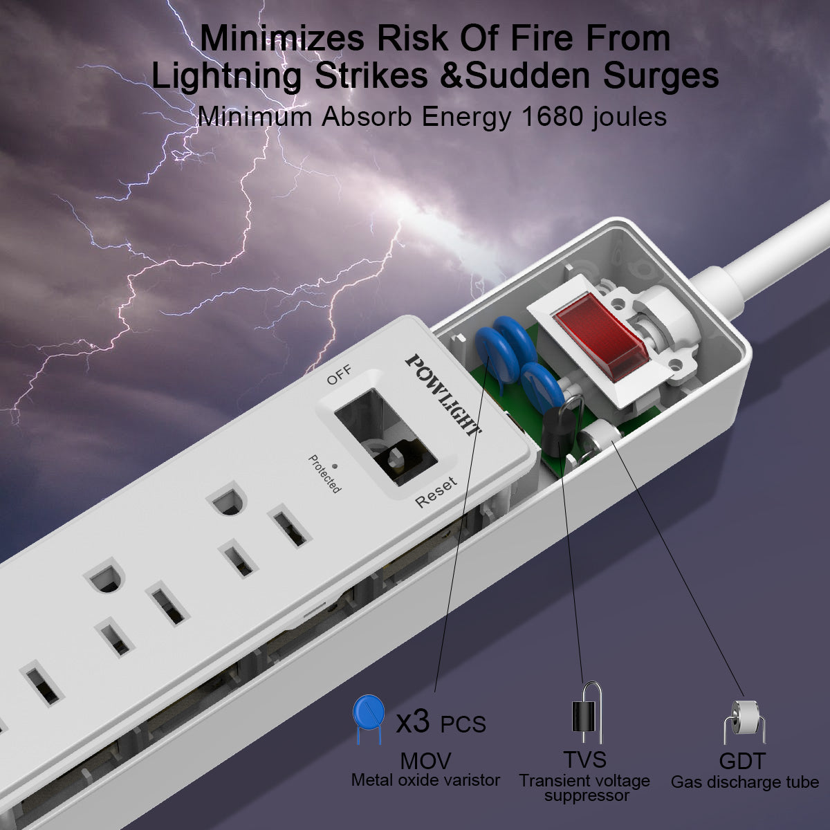 Comprehensive Safety Protection: The 1680-joule surge protector includes overload protection, short-circuit protection, over-current protection, and a flame-retardant casing. ETL certified to ensure safe and reliable use of your electronic devices.