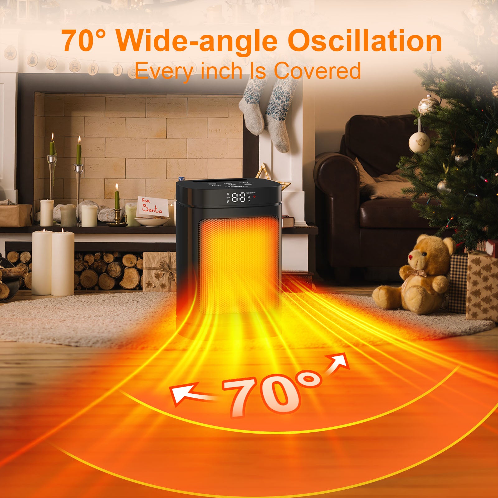 Remote Control & Oscillation: Comes with a remote control for easy adjustments from a distance. The wide-angle automatic oscillation ensures warm air is evenly distributed throughout the room. The remote control requires 2 AAA batteries (batteries not included).