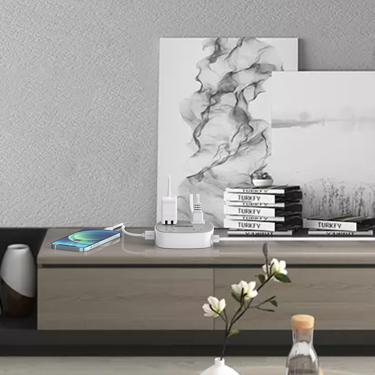 4 AC Outlets + 3 USB Charging Ports: This power strip is equipped with 4 AC outlets and 3 USB charging ports, including 1 USB-C. It allows you to power and charge multiple devices at the same time, making it perfect for use in homes, dorm rooms, and offices.