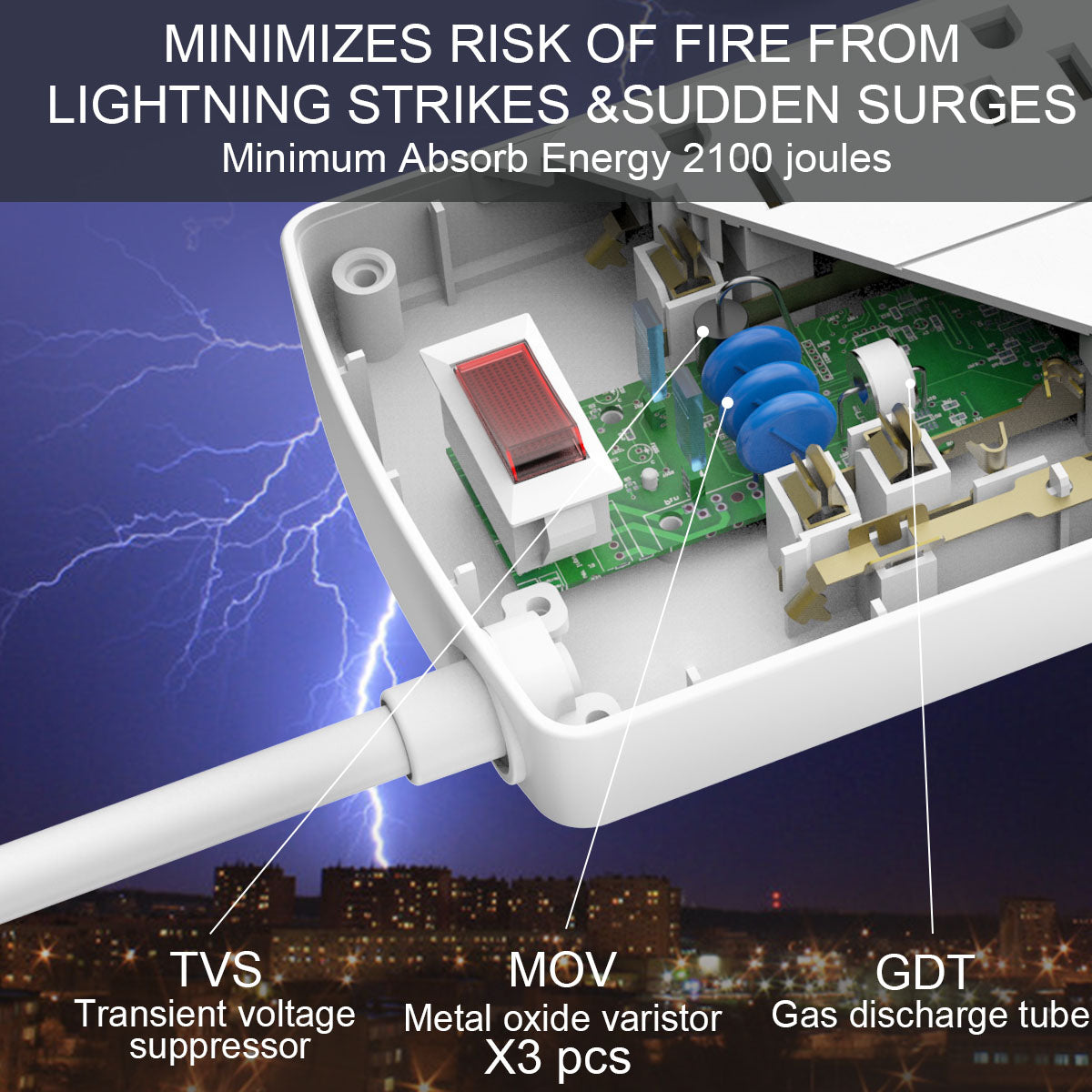 Multiple Safety Protections: The surge protector outlet features built-in overheat, overload, and short-circuit protection to ensure safe operation. The eco-friendly, flame-retardant housing offers superior heat resistance, providing a secure and reliable power solution for you and your family.