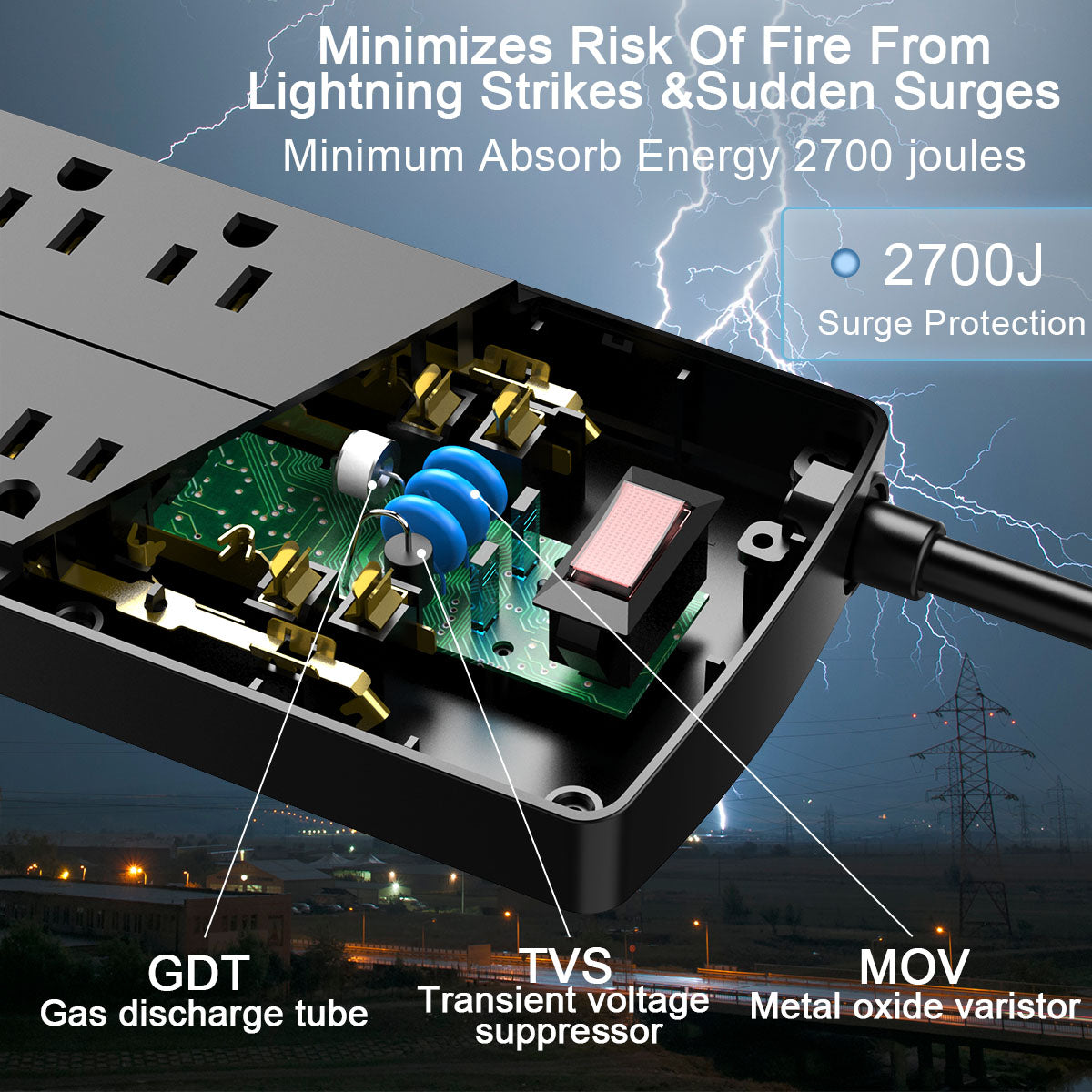 Professional-Grade Surge Protection: This surge protector power strip offers multiple safety features including overload, overcurrent, and short-circuit protection. The 2700-joule surge protection system effectively guards against lightning strikes, voltage spikes, and power surges, keeping your electronics safe.