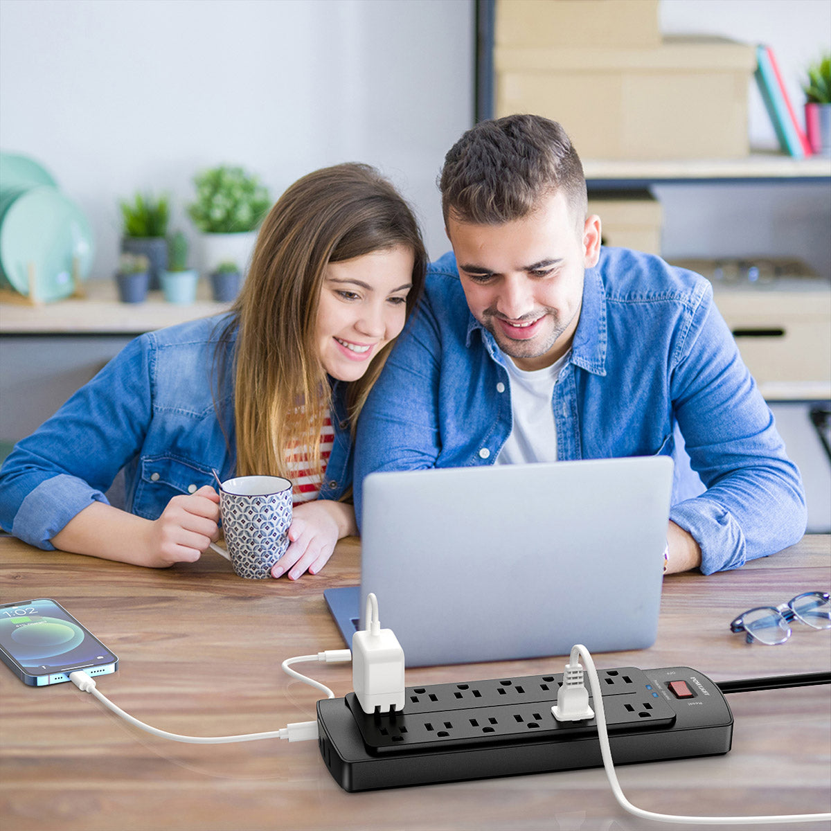 16-in-1 Multi-Functional Power Strip Design: This surge protector features 12 AC outlets and 4 USB charging ports (including 2 USB-C), allowing you to power and charge multiple devices simultaneously. Perfect for use in homes, offices, or entertainment centers.
